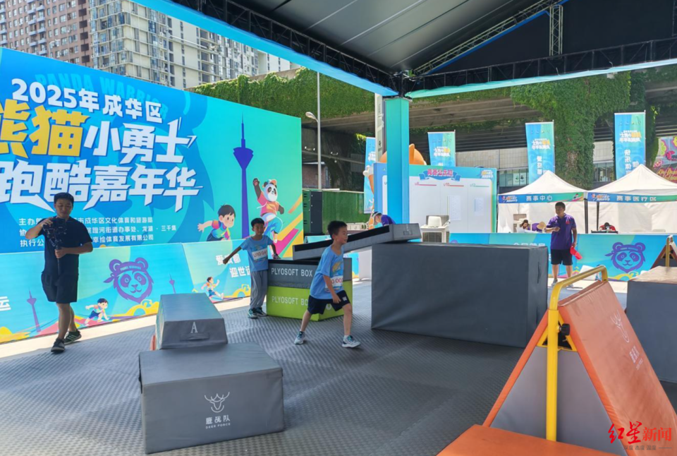 作为成华区“熊猫”系列运动赛事IP的延伸,本次“熊猫小勇士跑酷嘉年华”吸引了超200余名青少年参赛。跑酷追逐赛经过安全化、趣味化、低门槛化改造后,既满足了小朋友对综合体能提升和应急自救能力培养的需求,又因其独特的竞技性和趣味性,让孩子们在竞技中收获成长与自信,成为亲子家庭的热门“打卡”项目,助力全民健身热潮持续涌动。